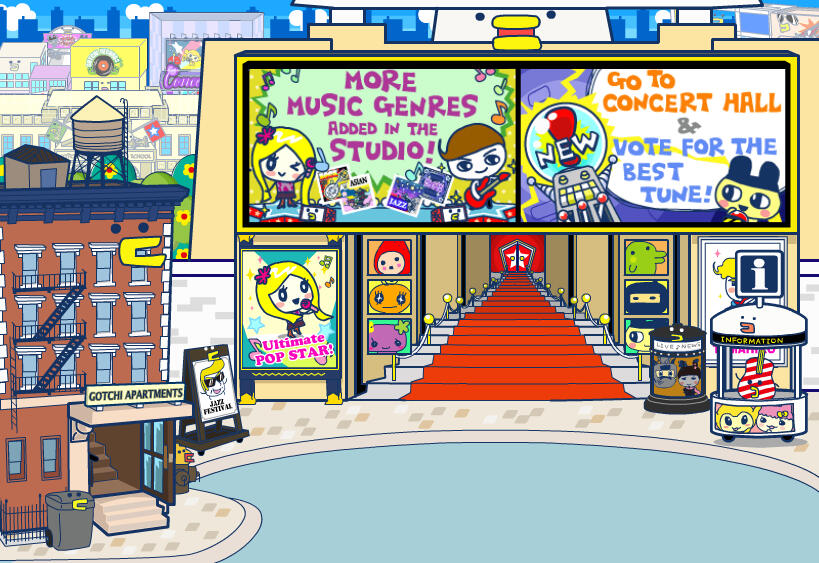 In December 2008, a preview version of a new Tamatown version called "Music City" was launched in the US, for use with the upcoming Tamagotchi Music Star. This version of Tamatown was vastly different from earlier versions in that it took the form of an MMO which required registering an account in order to play, and like the V5 site, a single version of the site was hosted for all regions rather than the US and European sites being hosted separately. This preview version allowed the player to explore the outside areas of the city, but little functionality was present at this point.Within a few weeks, the remaining areas of the site would launch, though new features and additional CD customisation wouldn't be unlocked until later on in 2009.