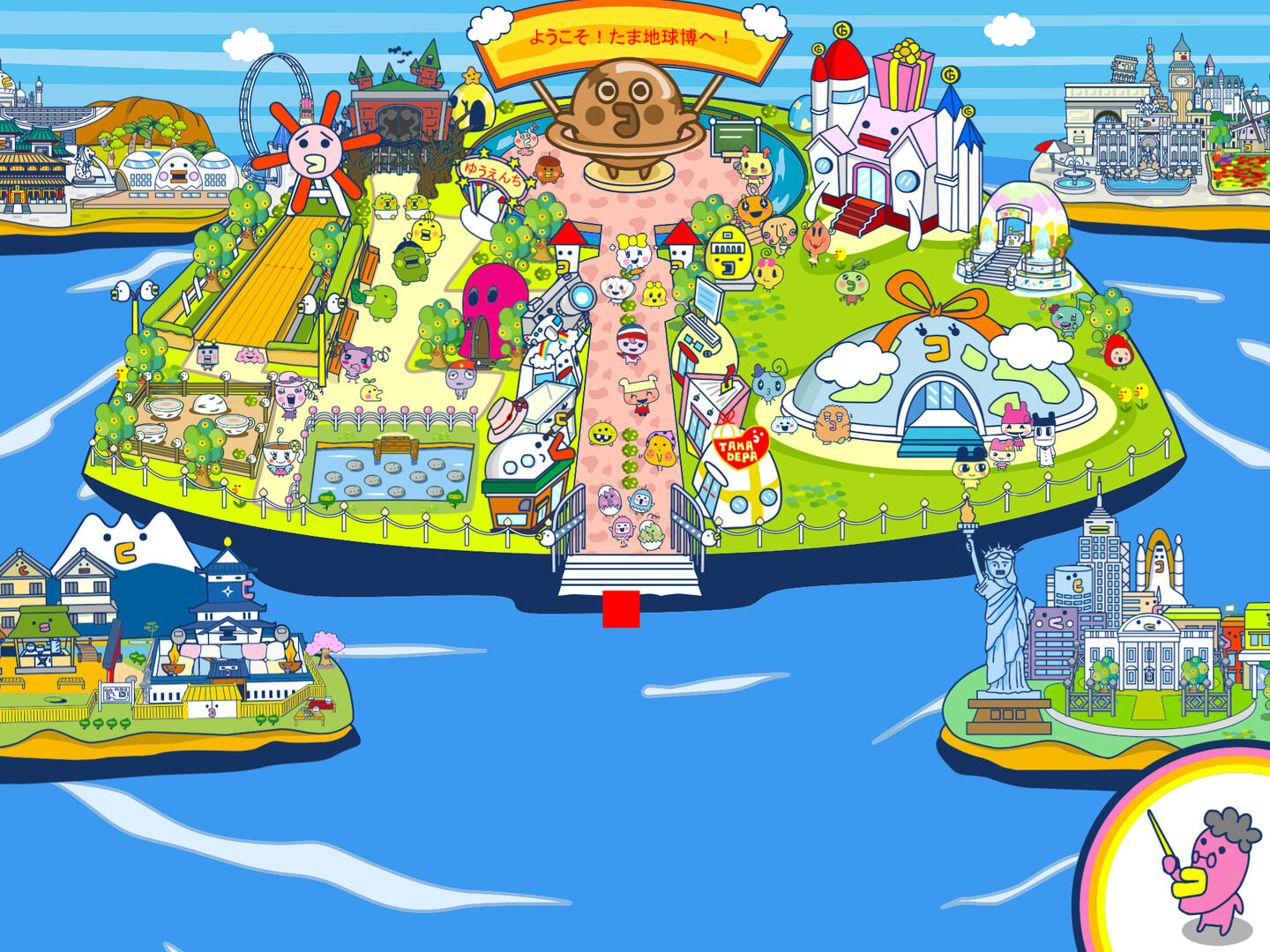 Succeeding Tamatown V3 / V4 and the various Japanese websites which spun off from the original e-Tamago was the Tama & Earth Expo, the first Japanese Tamatown site to be localised for an English-speaking audience (and later on, several other languages too). First opening in November 2007, the design of the locations diverged from the previous versions of Tamatown and the site as a whole was more game-focused - like the earlier e-Tamago sites - than the more exploration-focused Tamatown V3 and V4 sites.The Tama & Earth Expo was opened around the time of the release of the Family Iro Iro! Tamagotchi Plus device (a.k.a. the Famitama) in Japan, which was localised as Tamagotchi Connection V5 (a.k.a. the Familitchi) several months later for the international market.